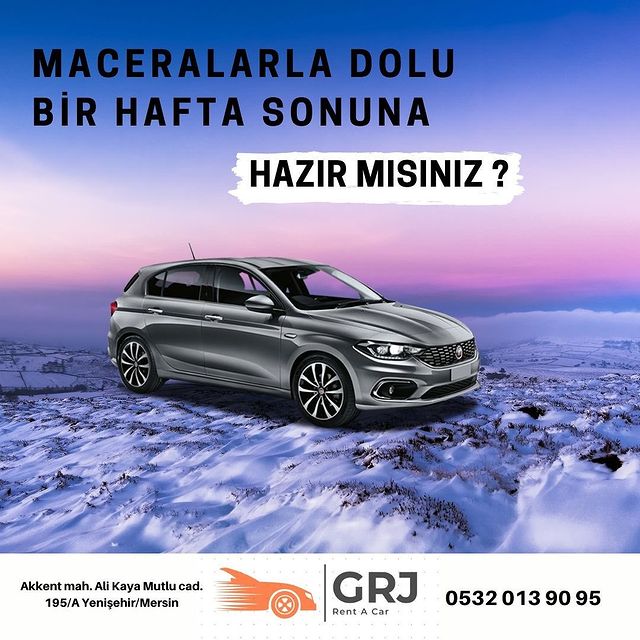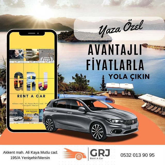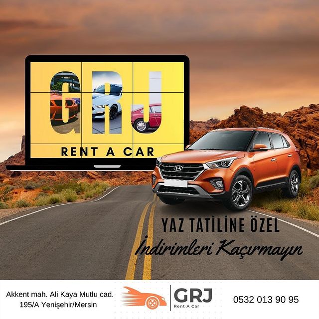 Güven, Konfor ve Mutluluk sloganı ile 2015 yılından kurulan GrjRent A Car araç kiralama sektöründe müşterilerine hizmet vermektedir. Günlük kiralama hizmetin yanı sıra uzun dönemli araç kiralama hizmeti yürütmektedir. Araç filosunu müşteri istek ve taleplerine uygun şekilde revize eden GrjRent A Car, sürekli yenilenen filosu ile müşterilerine yüksek kalite standartları sunmaktadır. Kiraladığınız araçlarımız, her bir kiralama öncesinde güvenlik açısından kontrol edilmekte ve araçlarımız kiralama öncesi dezenfekte edilerek siz müşterilerimize sunulmaktadır. Yurt içi ve Yurt dışı müşterilerimize kolaylık ve ayrıcalıklar sağlamakta olup, hava limanına araç teslimi ve alımı yapılmaktadır